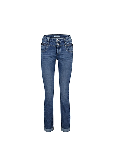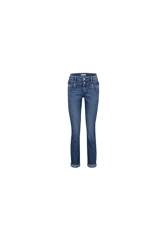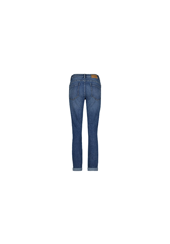 Jeans Sienna voor dames van het merk Red Button. Deze spijkerbroek heeft een dubbele knoopssluiting, een regular hoogte, regular fit en tapered legs. Verkrijgbaar in een klassiek blauwe denim kleur.