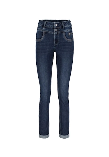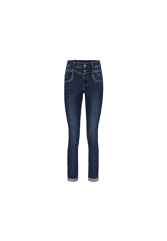Jeans Sienna voor dames van het merk Red Button. Deze spijkerbroek heeft een regular hoogte, regular fit en tapered legs. De jeans heeft een ritssluiting en een borduursel. Verkrijgbaar in een grijs blauwe wassing.