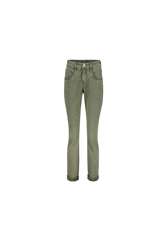 Jeans Sissy voor dames van het merk Red Button. De spijkerbroek is verkrijgbaar in een coloured denim wassing. De broek heeft een regular pasvorm in de taille, slim fit en slim legs. De jeans is verkrijgbaar in het dark khaki.