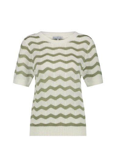 Gestreept golvend patroon allover op het shirt.