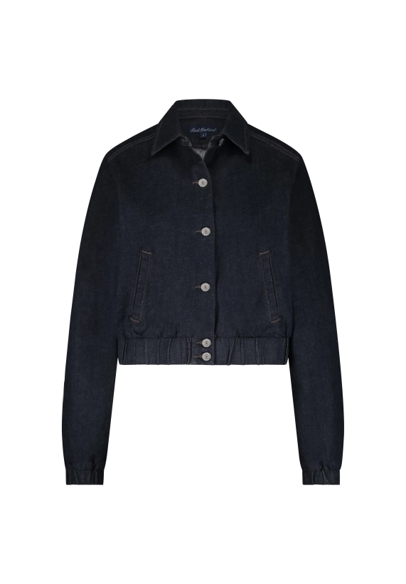 Denim bomber jacket van Red Button met lange mouwen, kraag, knoopsluiting, steekzakken en een elastische zoom.