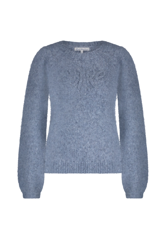 Ronde hals en met een gebreid logo op de voorkant van de trui.