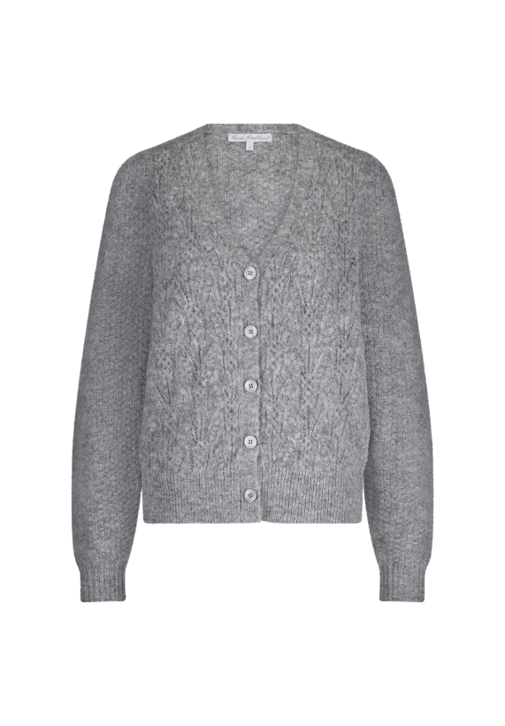 Vest Cardigan Ajour voor dames van het merk Red Button. Verkrijgbaar in de kleur grijs & ivoor wit.
