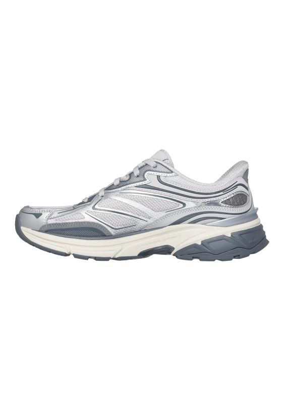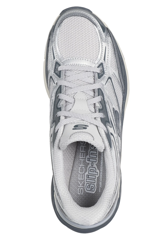 Deze geveterde instapper is ontworpen met ons exclusieve Heel Pillow, een bovenwerk van mesh met leer en synthetische overlays en een gewatteerde Skechers Air-Cooled Memory Foam binnenzool.