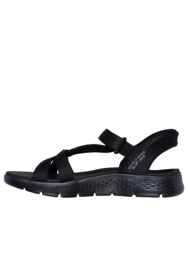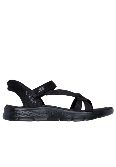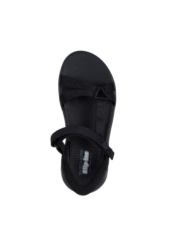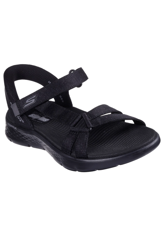 Slip-ins sandalen voor dames van het merk Skechers. Verkrijgbaar in de kleur zwart & beige.