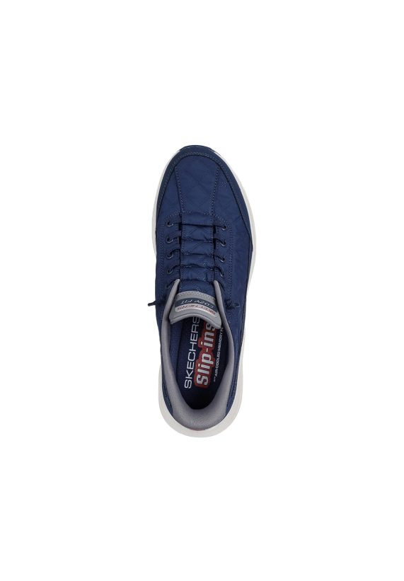 Slip ins sneakers voor heren van het merk Skechers. Verkrijgbaar in de kleur blauw en taupe.