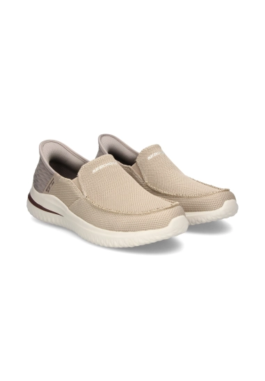Deze instapper heeft een bovenwerk van mesh met een Classic Fit, een comfortabele Skechers Air-Cooled Memory Foam-binnenzool en Goga Mat Arch? voor extra ondersteuning.