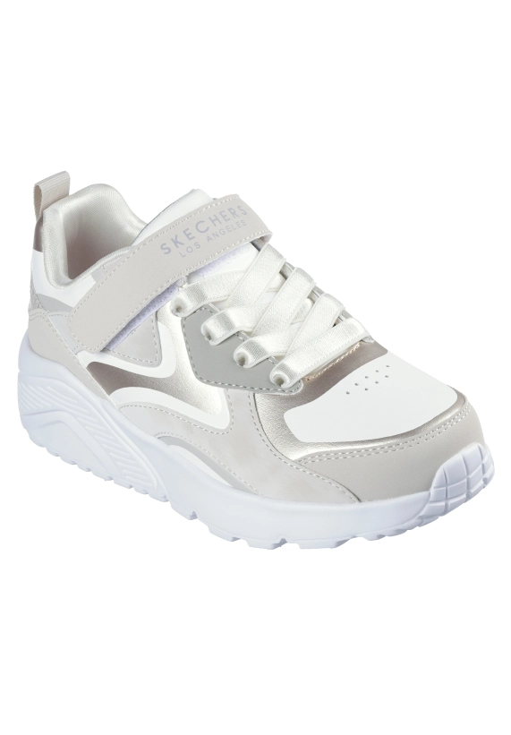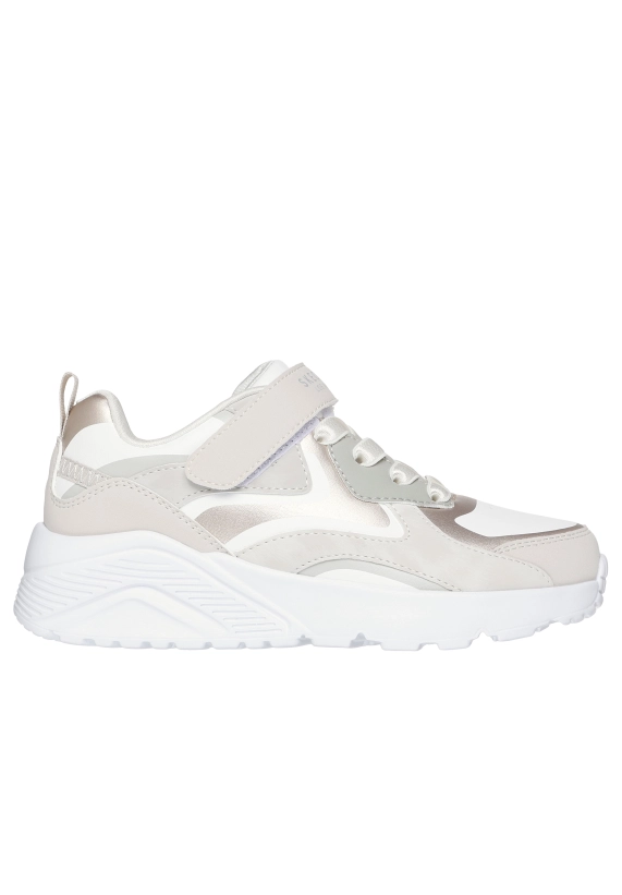 Sneakers voor meisjes van het merk Skechers. Verkrijgbaar in de kleur beige en licht roze.