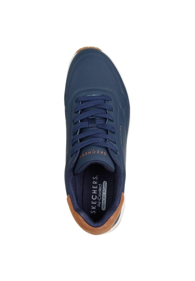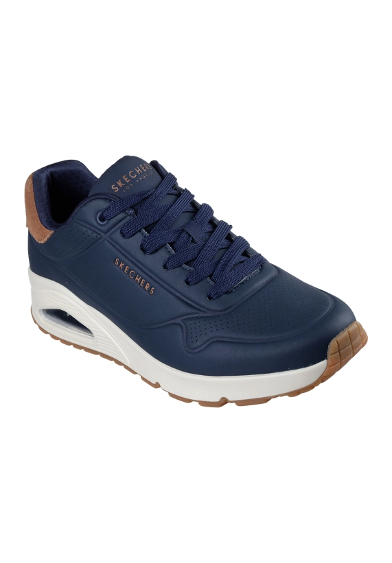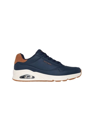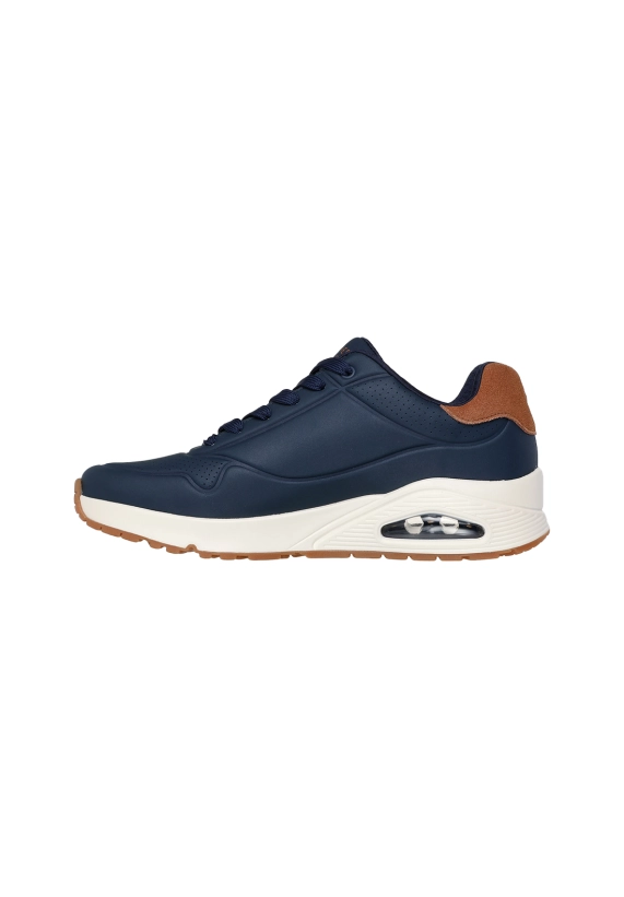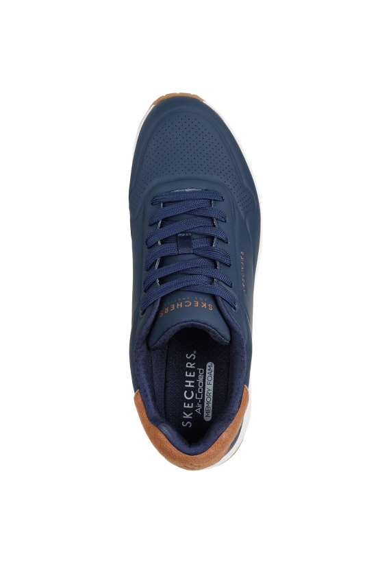 Sneakers voor heren van het merk Skechers. Verkrijgbaar in de kleur olijf en donker blauw.