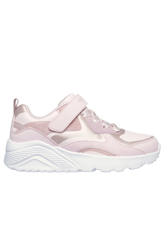 Sneakers voor meisjes van het merk Skechers. Verkrijgbaar in de kleur beige en licht roze.