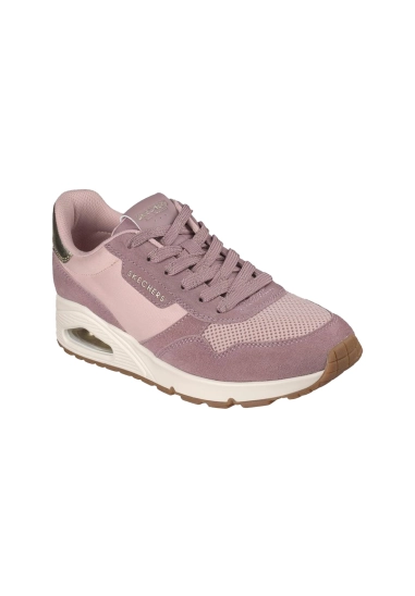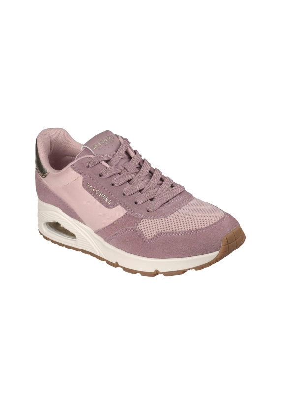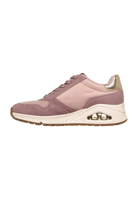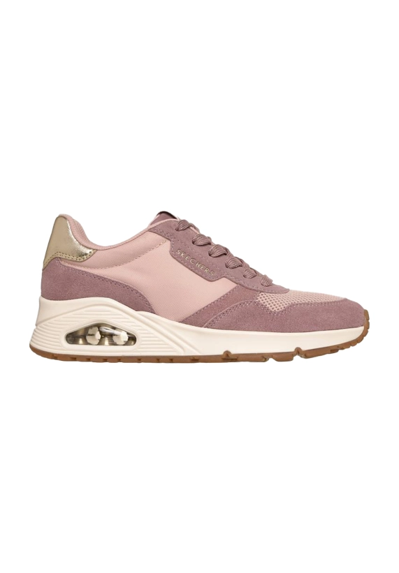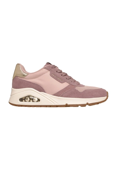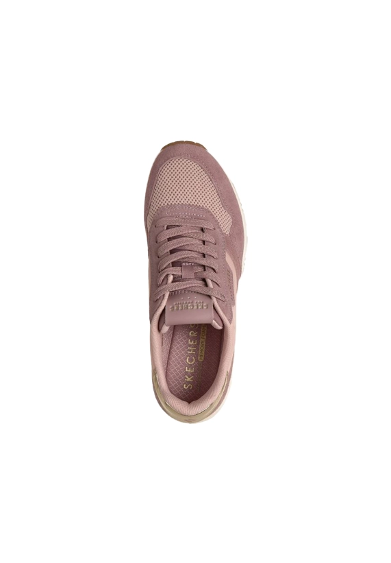 Sneakers voor dames van het merk Skechers. Verkrijgbaar in de kleur ivoor wit & roze.