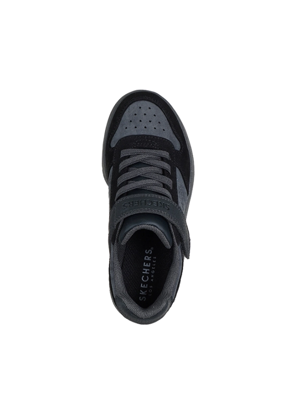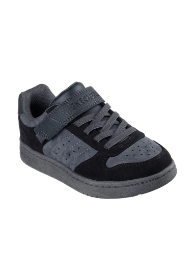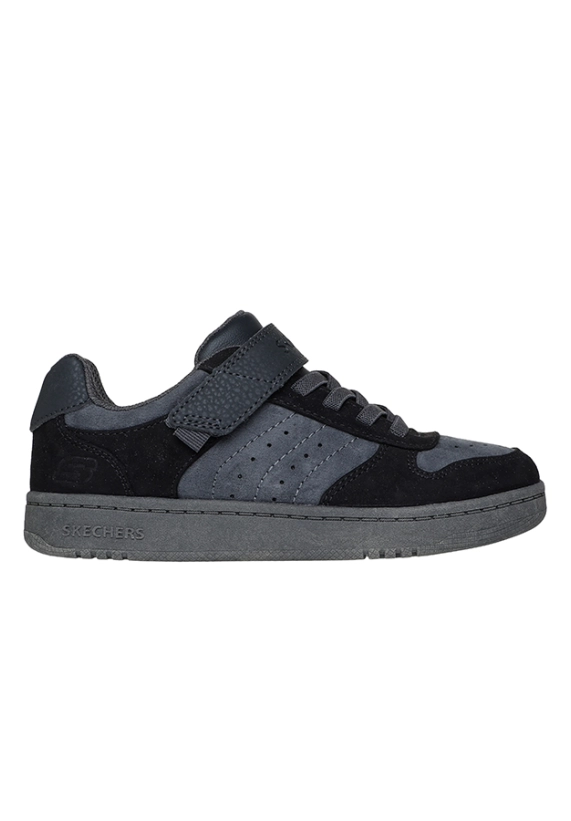 Dit model met aanpasbare sluiting van Skechers heeft een bovenwerk van imitatie-sude en synthetisch materiaal met elastische veters, verstelbaar klittenband en een comfortabele, gewatteerde binnenzool.