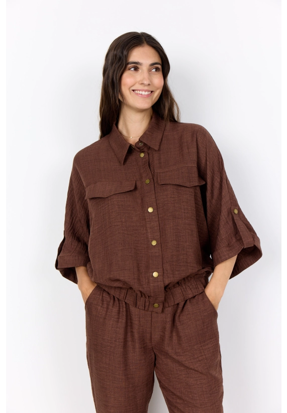 Blouse Charissa voor dames van het merk Soya concept. Verkrijgbaar in de kleuren roze, bruin & blauw.