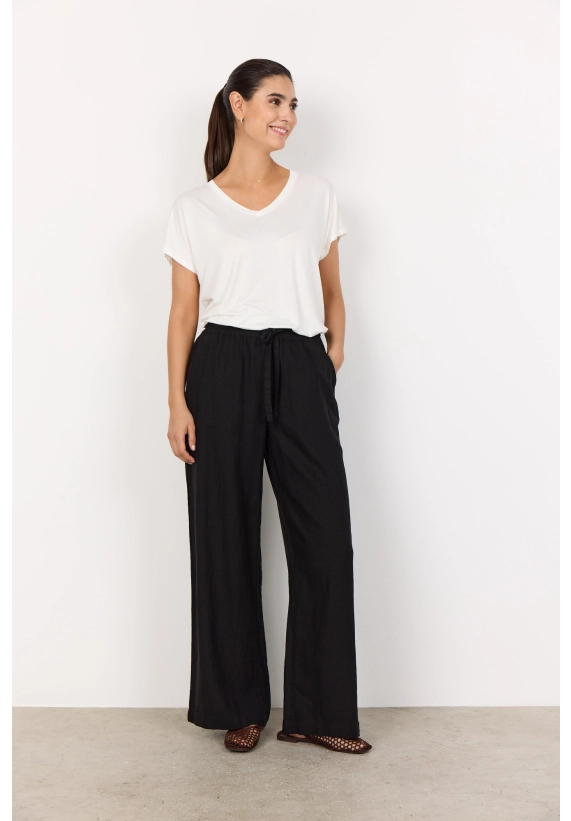 Broek Ina voor dames van het merk Soyaconcept. Verkrijgbaar in de kleur ivoor wit, zwart & brique.