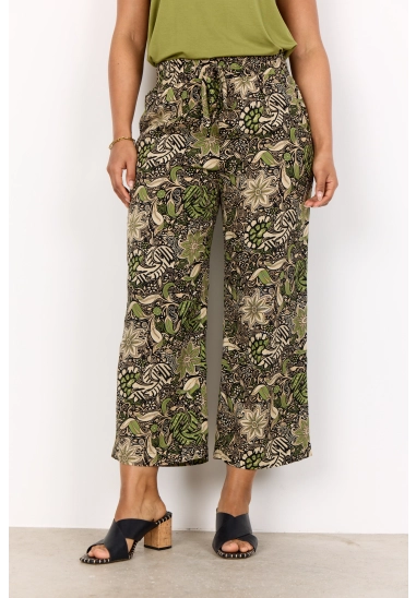 Broek Rosine voor dames van het merk Soya Concept. Verkrijgbaar in de printkleur oranje en groen.