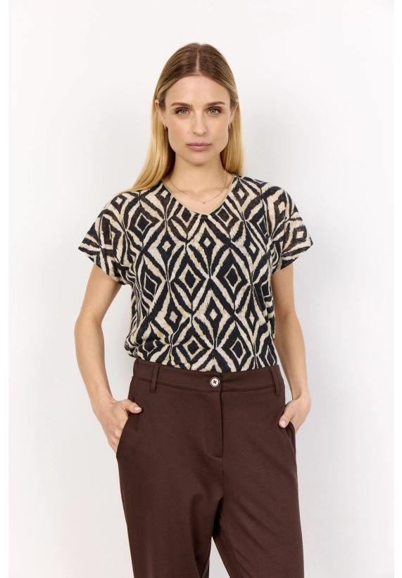 Shirt Aretha voor dames van het merk Soya Concept. Verkrijgbaar in de kleur print zwart & print rood.