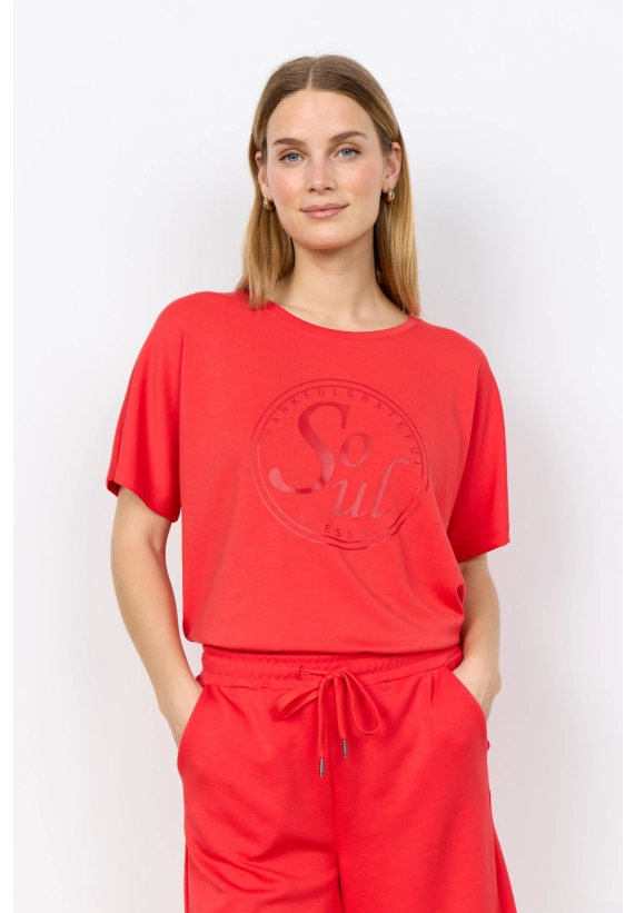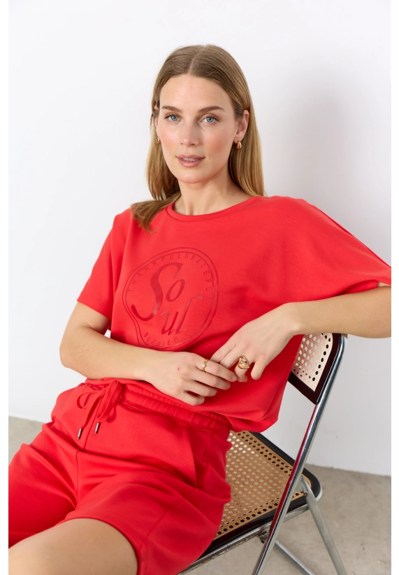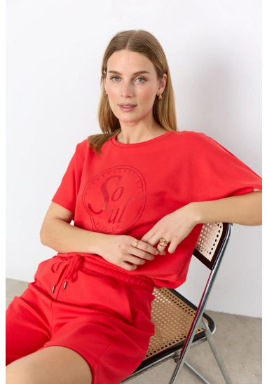 Shirt Banu voor dames van het merk Soya Concept. Verkrijgbaar in de kleuren koraal, ivoor wit & camel.