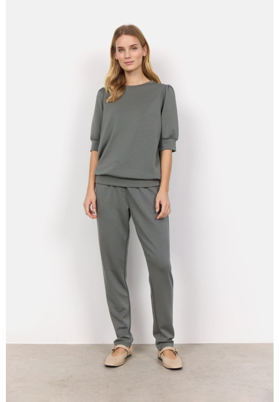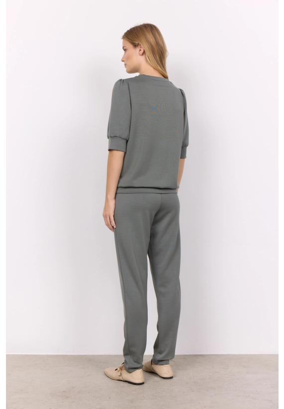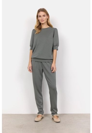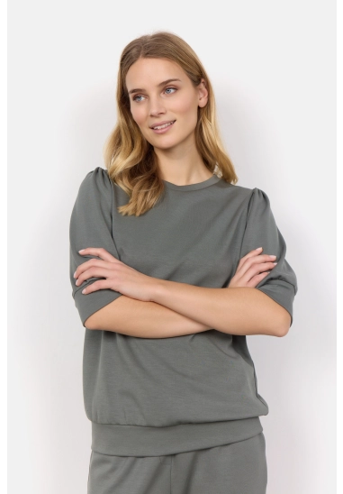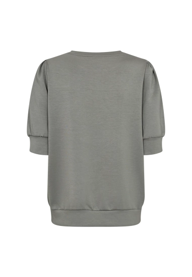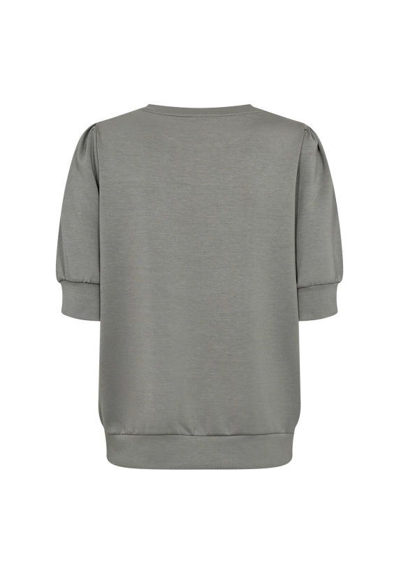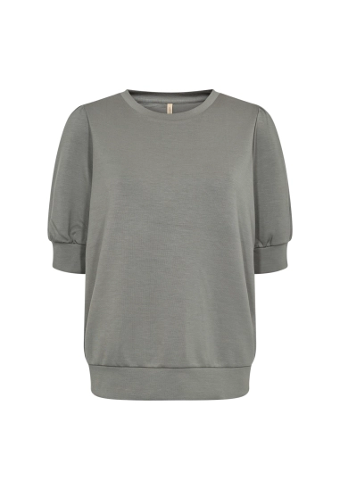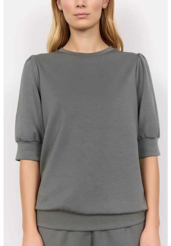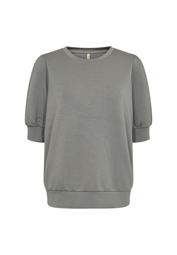 Met elatieken boord onderaan het shirt en aan de mouwen.
