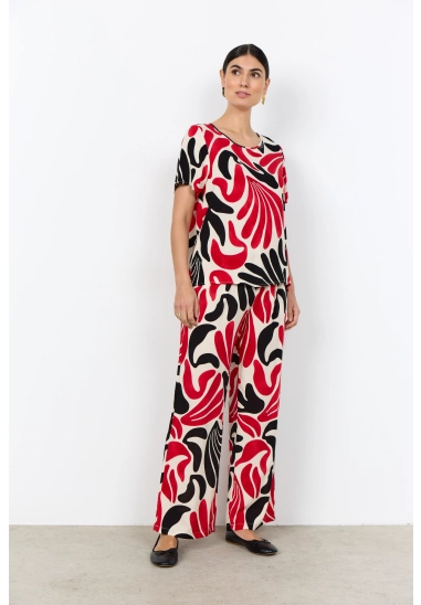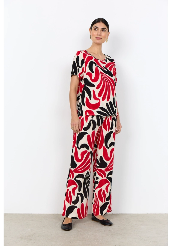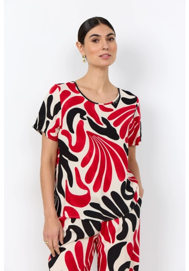 Shirt Feldi voor dames van het merk Soya Concept. Verkrijgbaar in de kleuren print rood en print camel.