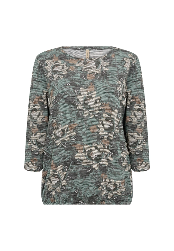 Driekwart mouw en met elastieken band onderaan het shirt.