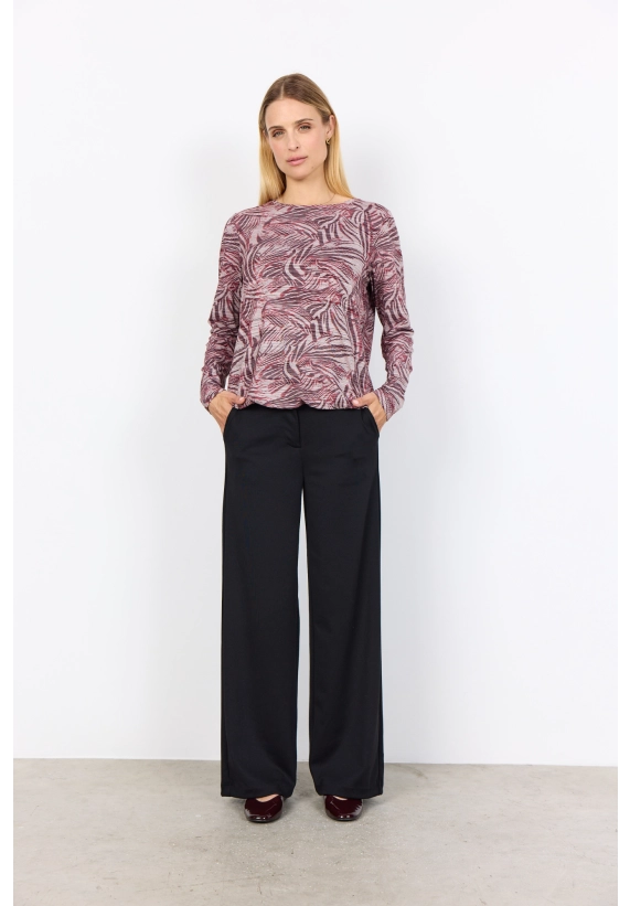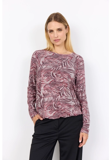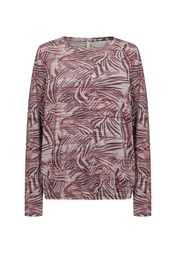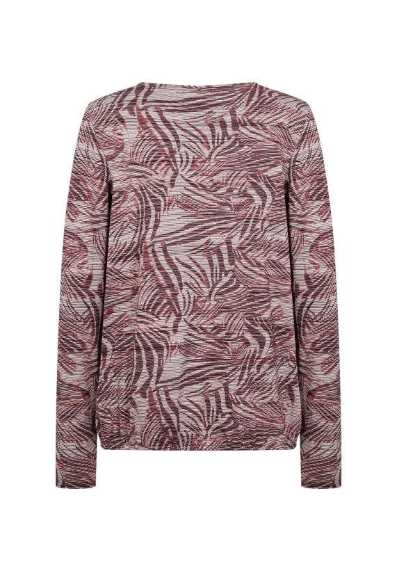 Ronde hals, lange mouwen en een dynamisch abstract dessin.