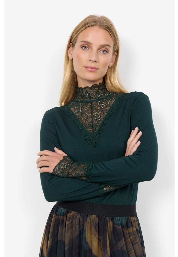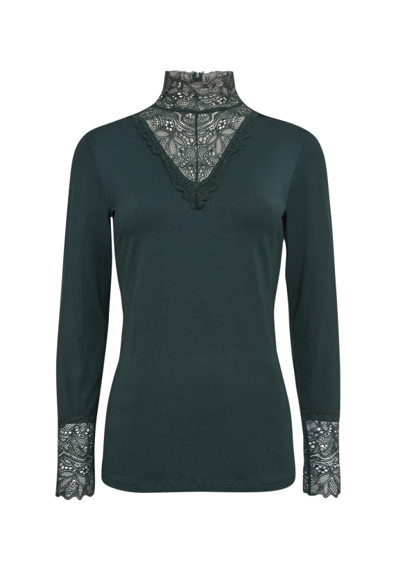 Met leuke kant details bij hals en armen.