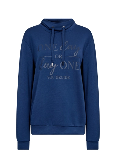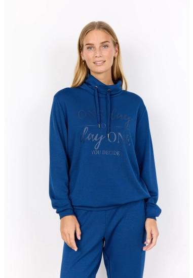 Met lange mouwen, opstaande kraag voorzien van trekkoord.