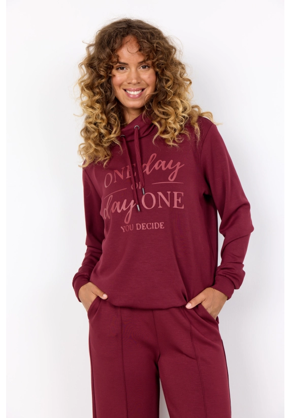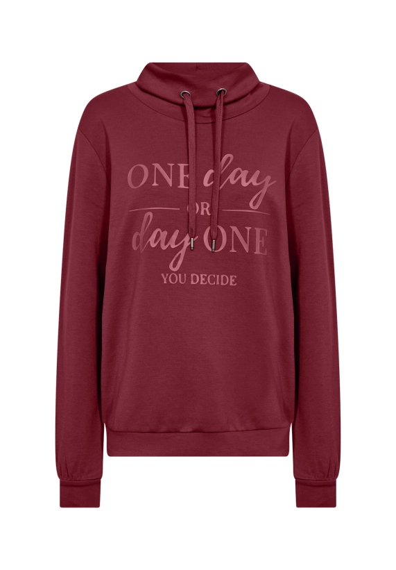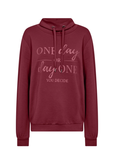 Met lange mouwen, opstaande kraag voorzien van trekkoord.