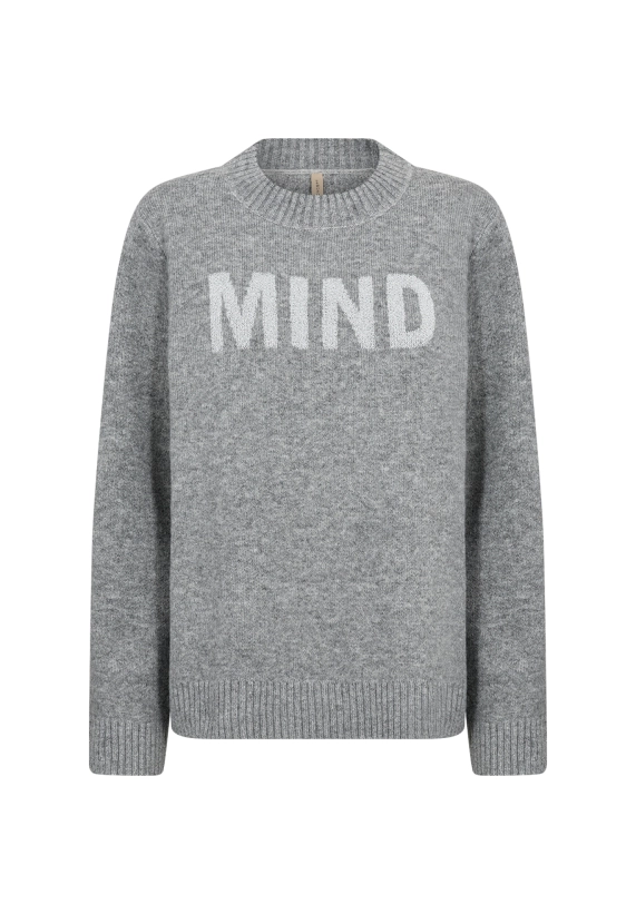 Glitterpatroon allover de trui en met tekst op voorpand.