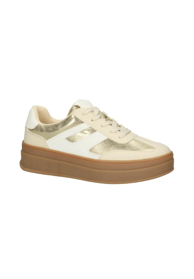 Sneakers voor dames van het merk Super Cracks. Verkrijgbaar in de kleur beige met goud, & beige met zilver.