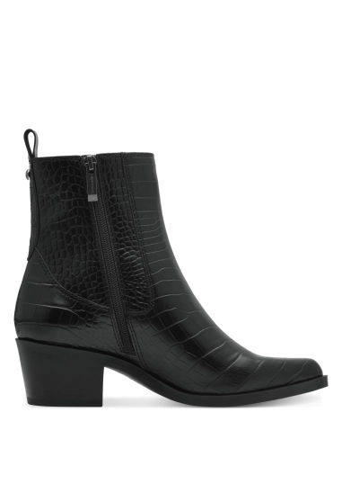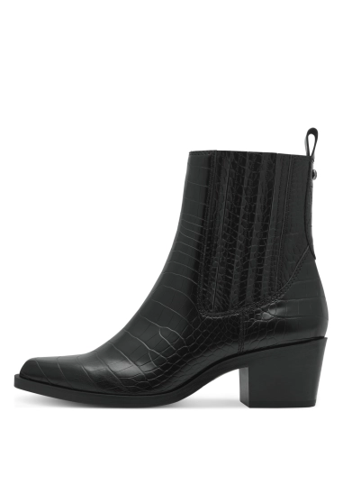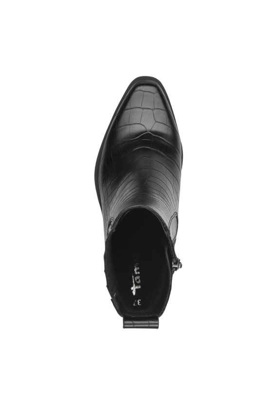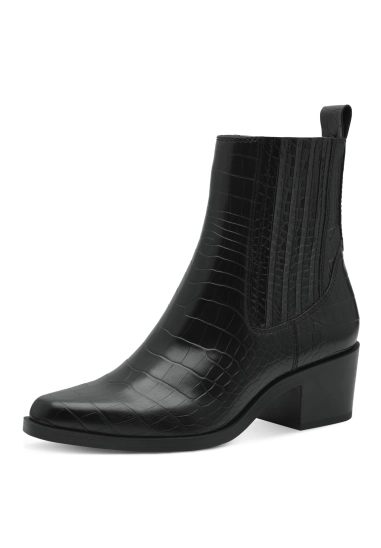 Deze zwarte enkellaarsjes van Tamaris zijn een echte aanvulling op je schoenenkast. Het model heeft een trendy krokoprint en een lage, stevige hak, waardoor ze niet alleen mooi maar ook comfortabel zijn om de hele dag te dragen. Dankzij het elastiek aan de zijkanten trek je de laarsjes makkelijk aan en uit.