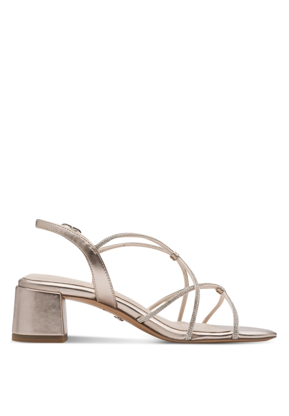 Verkrijgbaar in de kleur brons met allover glittersteentjes op de sandalen.