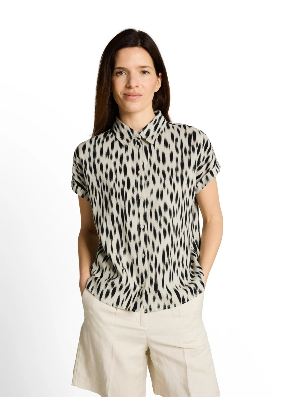 Blouse voor dames van het merk Tom Tailor. Verkrijgbaar in de kleur beige met zwart.