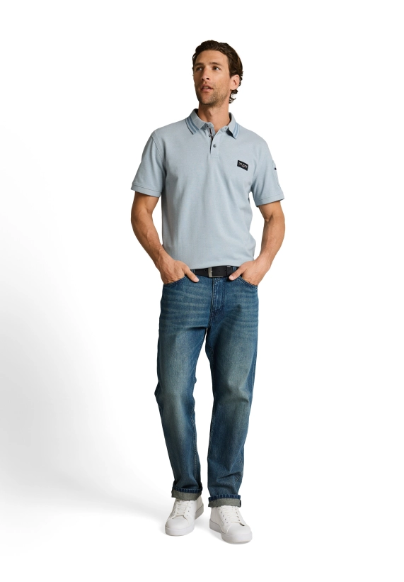 Polo voor heren van het merk Tom Tailor. Verkrijgbaar in de kleur blauw en licht blauw.