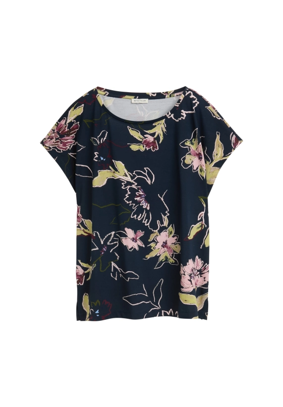 Shirt voor dames van het merk Tom Tailor. Verkrijgbaar in de kleur donker blauw met leuke print.