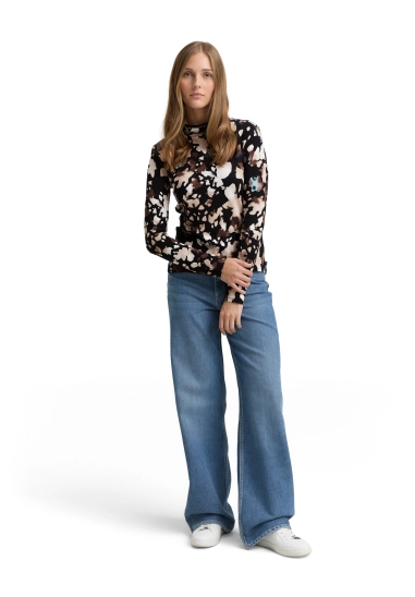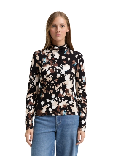 Shirt turtelneck voor dames van het merk Tom Tailor. Verkrijgbaar in de kleur zwart met bruin.