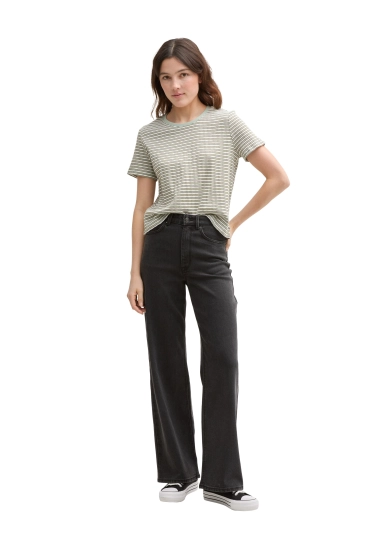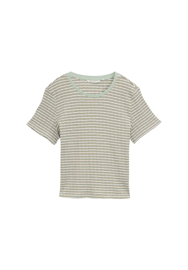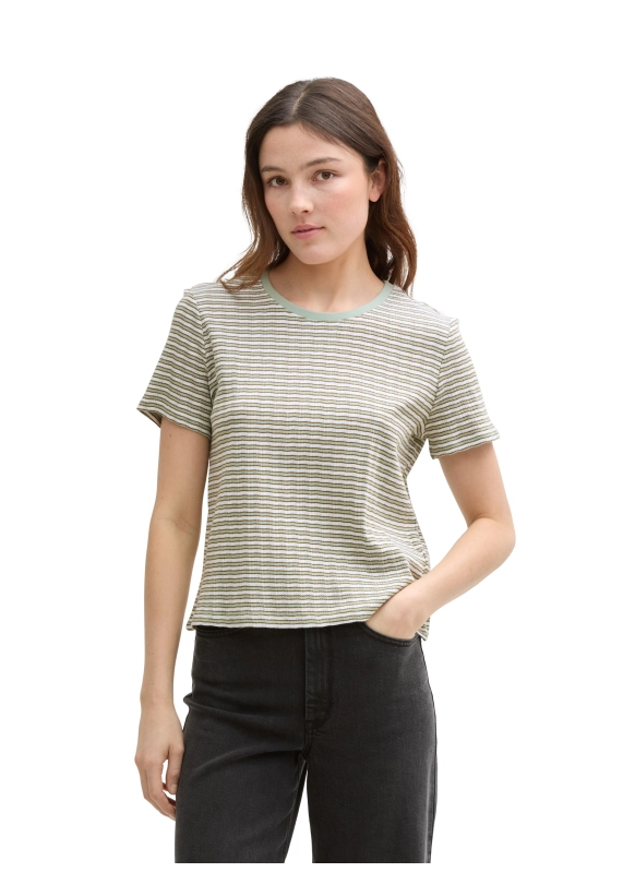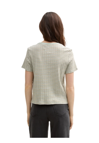 Shirt voor dames van het merk Tom Tailor. Verkrijgbaar in de kleur groen met bruin/beige streep.