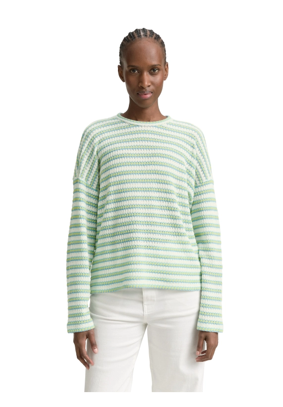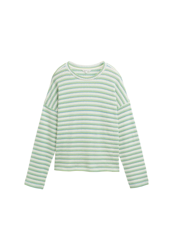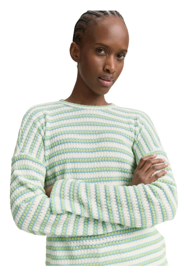 Trui voor dames van het merk Tom Tailor. Verkrijgbaar in de kleur wit met groen en blauw.