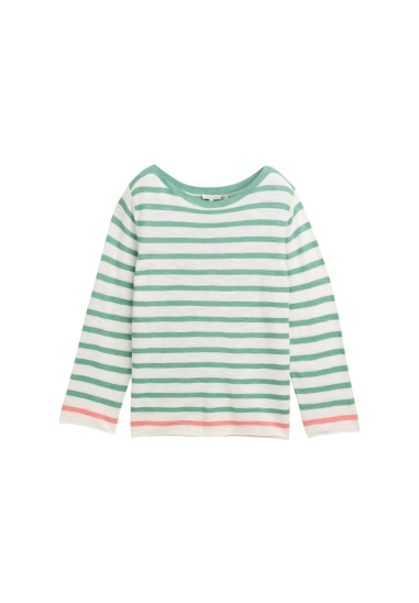 Ronde hals en gestreept.