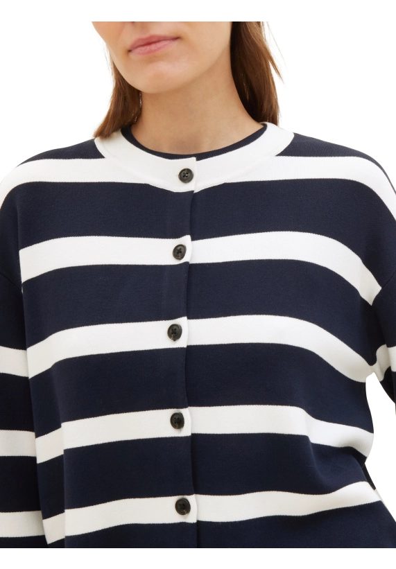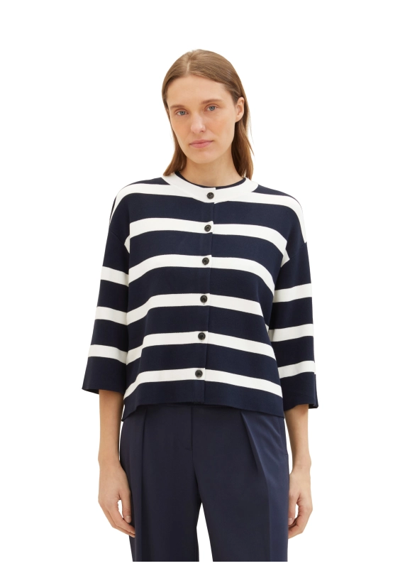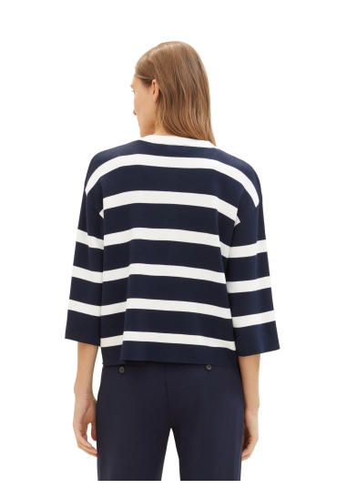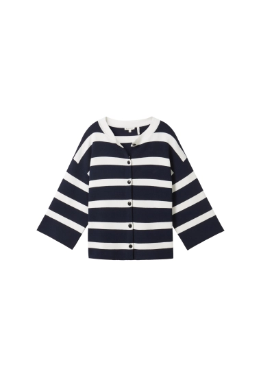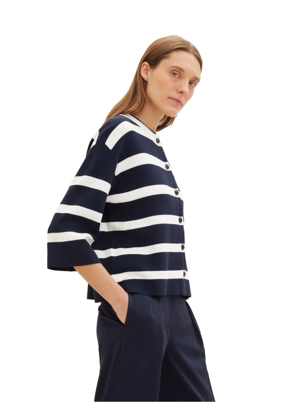 Verkrijgbaar in de kleur donker blauw wit gestreept.