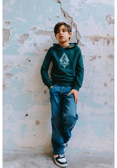 Hoodie Hobie voor jongens van het merk Tygo & Vito. Verkrijgbaar in de kleur groen.