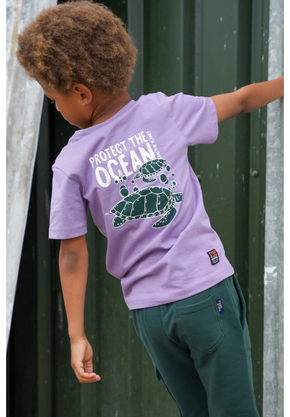 Met klein embleem op de borst en toffe print op de achterkant van het shirt.
