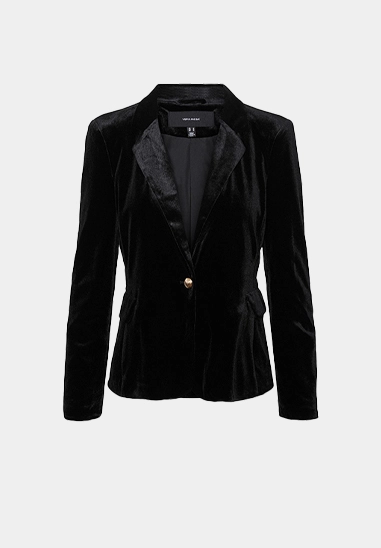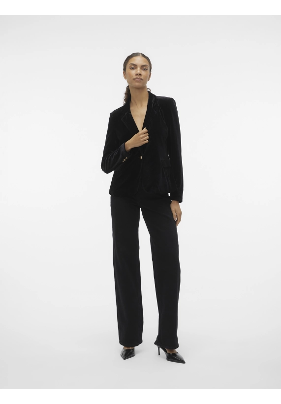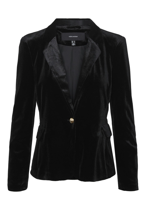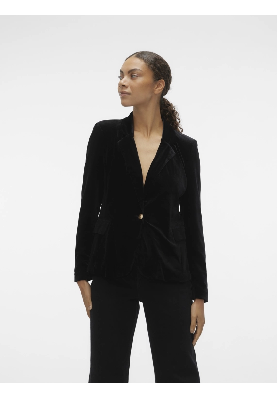 Deze velours blazer heeft een beetje glans, zakjes en 1 knoop.