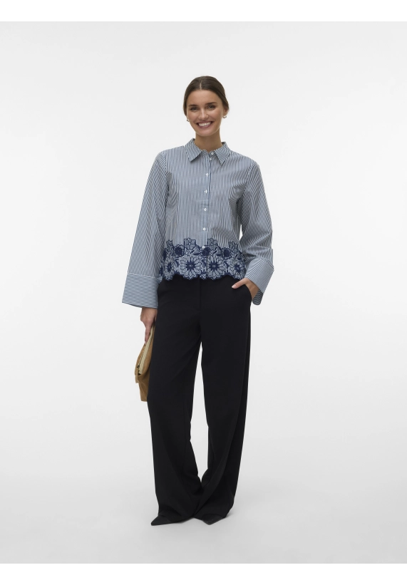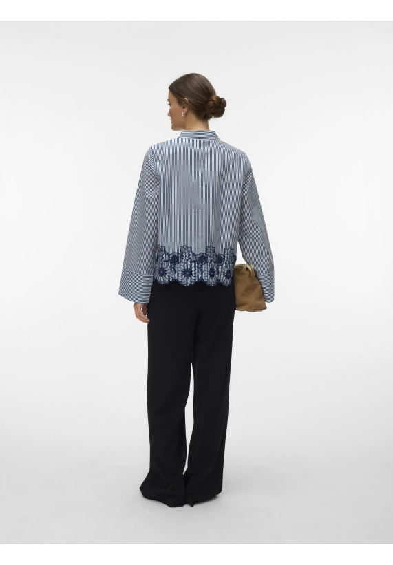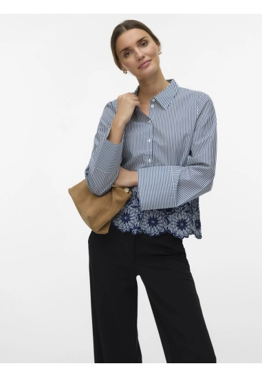 Verkrijgbaar in de kleuren blauw wit gestreept met opdruk.