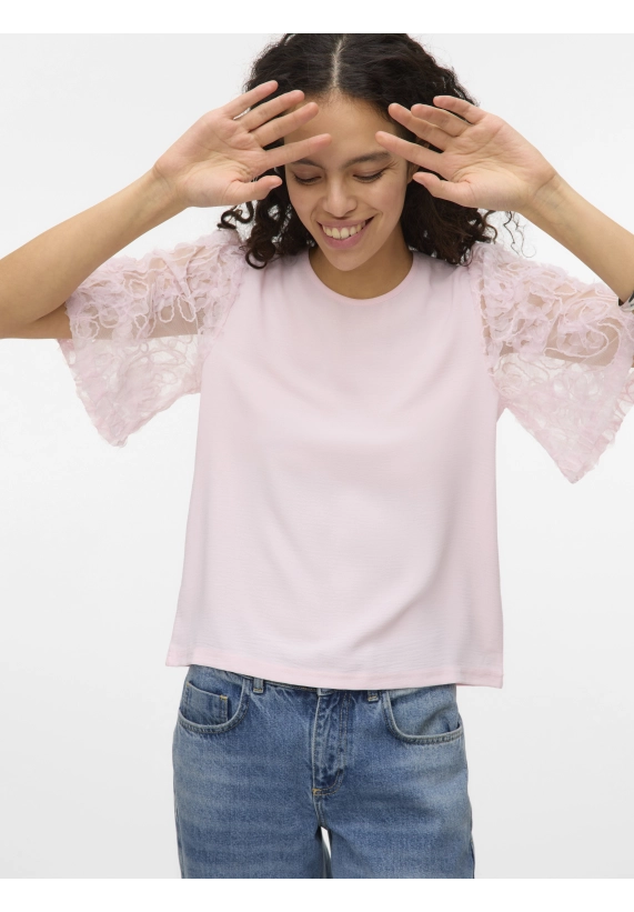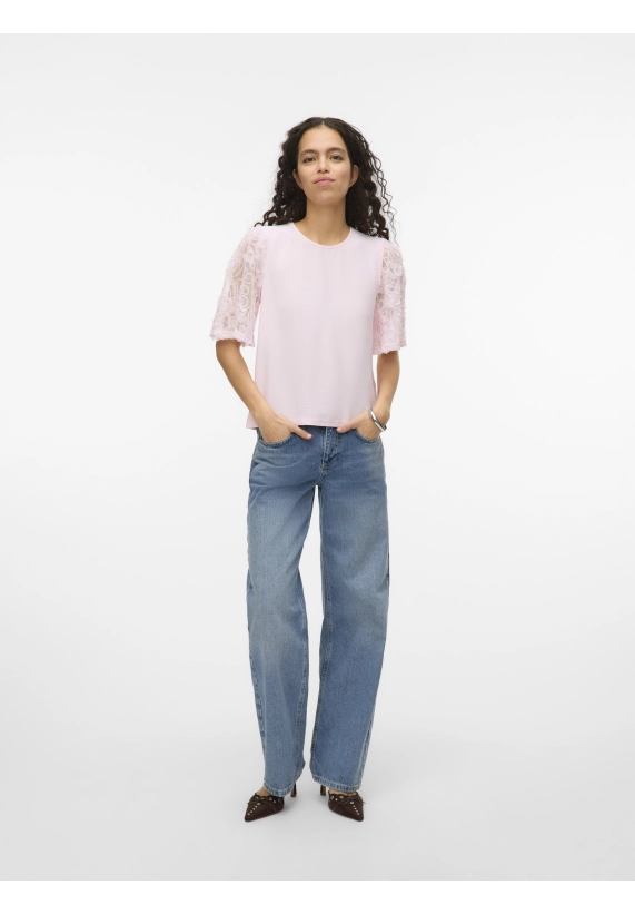 Shirt Nina voor dames van het merk Vero Moda. Met transparante korte mouwen.