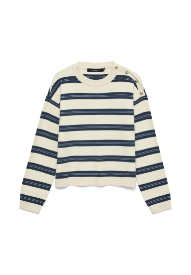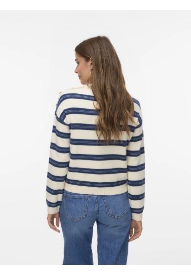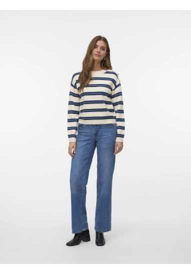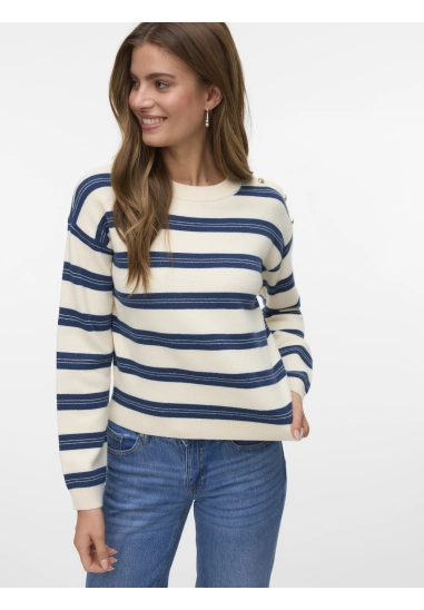 Trui Gold voor dames van het merk Vero Moda. Verkrijgbaar in de kleur beige met blauwe streep.