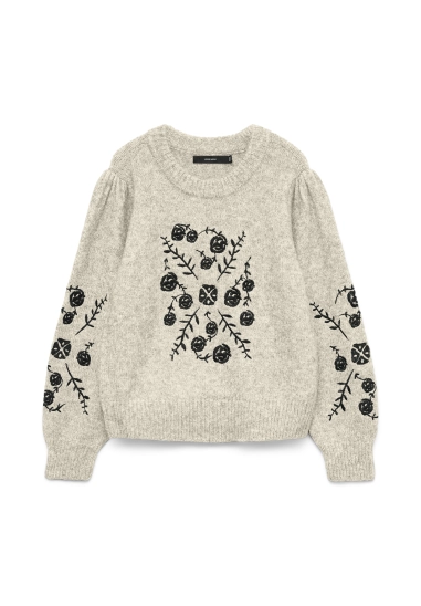 Verkrijgbaar in de kleuren ivoor wit en grijs met zwarte applicatie.