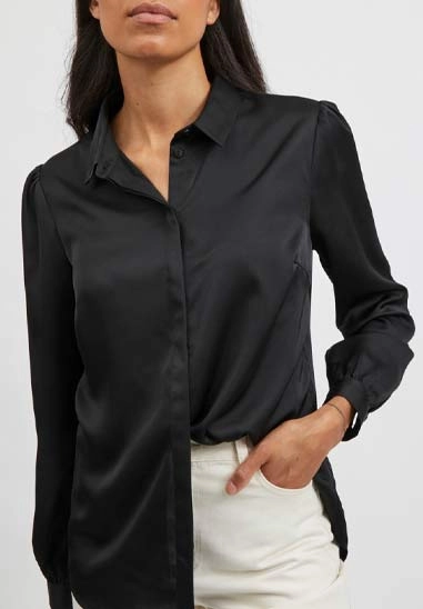 Blouse Ellette voor dames van het merk Vila. De blouse met lange mouwen heeft een kraag en knoopsluiting. Verkrijgbaar in de kleur cement.