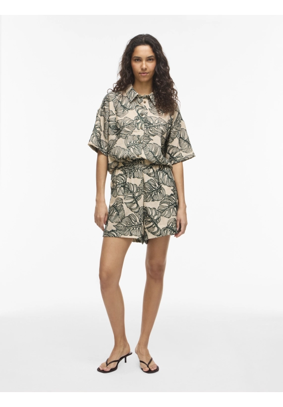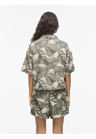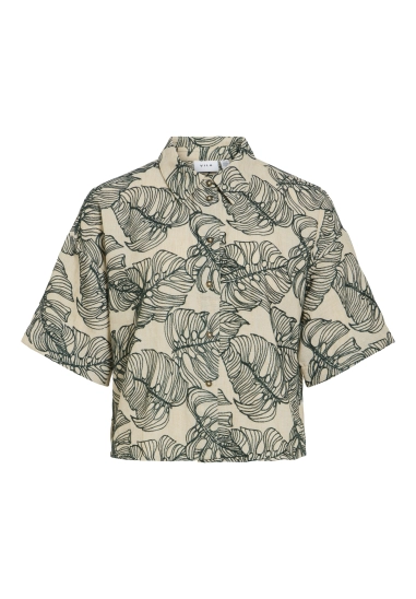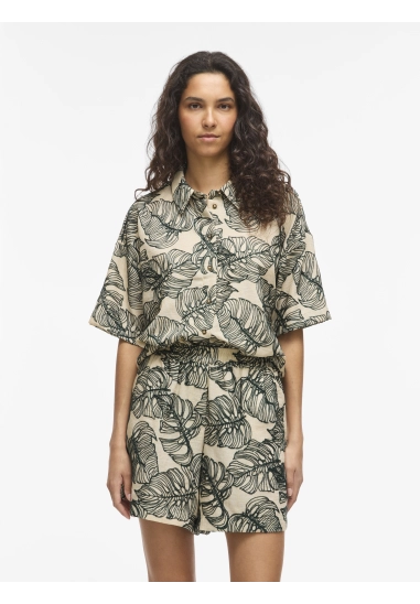 Blouse Flura voor dames van het merk Vila. Verkrijgbaar in de kleur beige met groen.