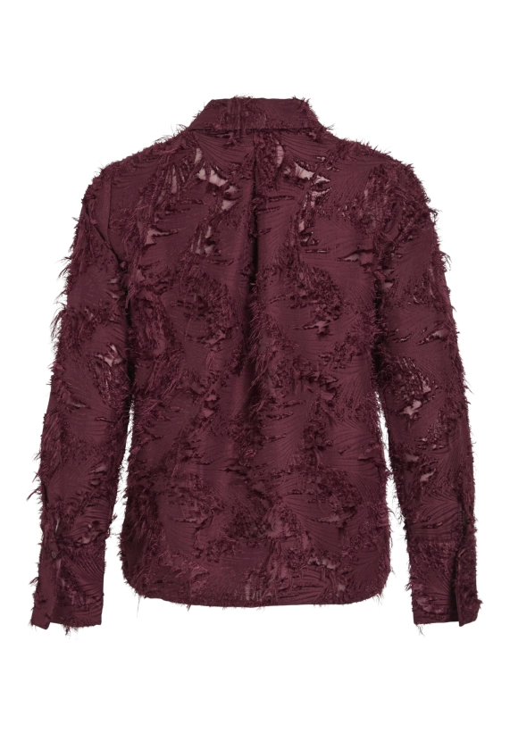Blouse Misanja voor dames van het merk Vila. Verkrijgbaar in de kleur paars & bordeaux rood.